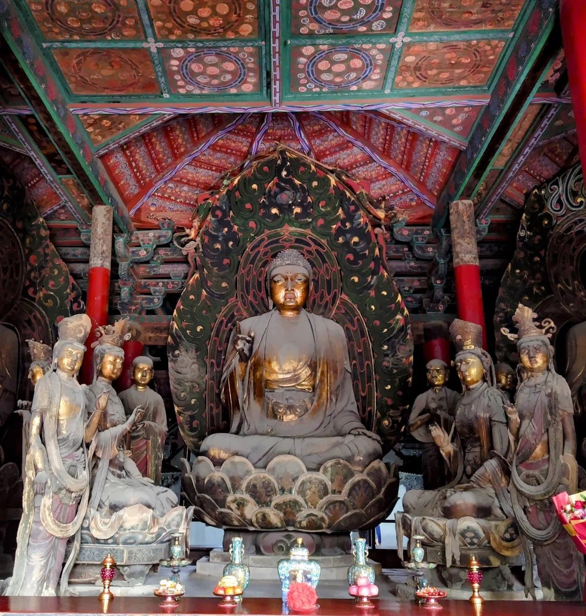 建物はそのまま。鎮座する仏像31体もあまねく 創建時(遼朝 11世紀)のものという、千年時空を超越したお堂。